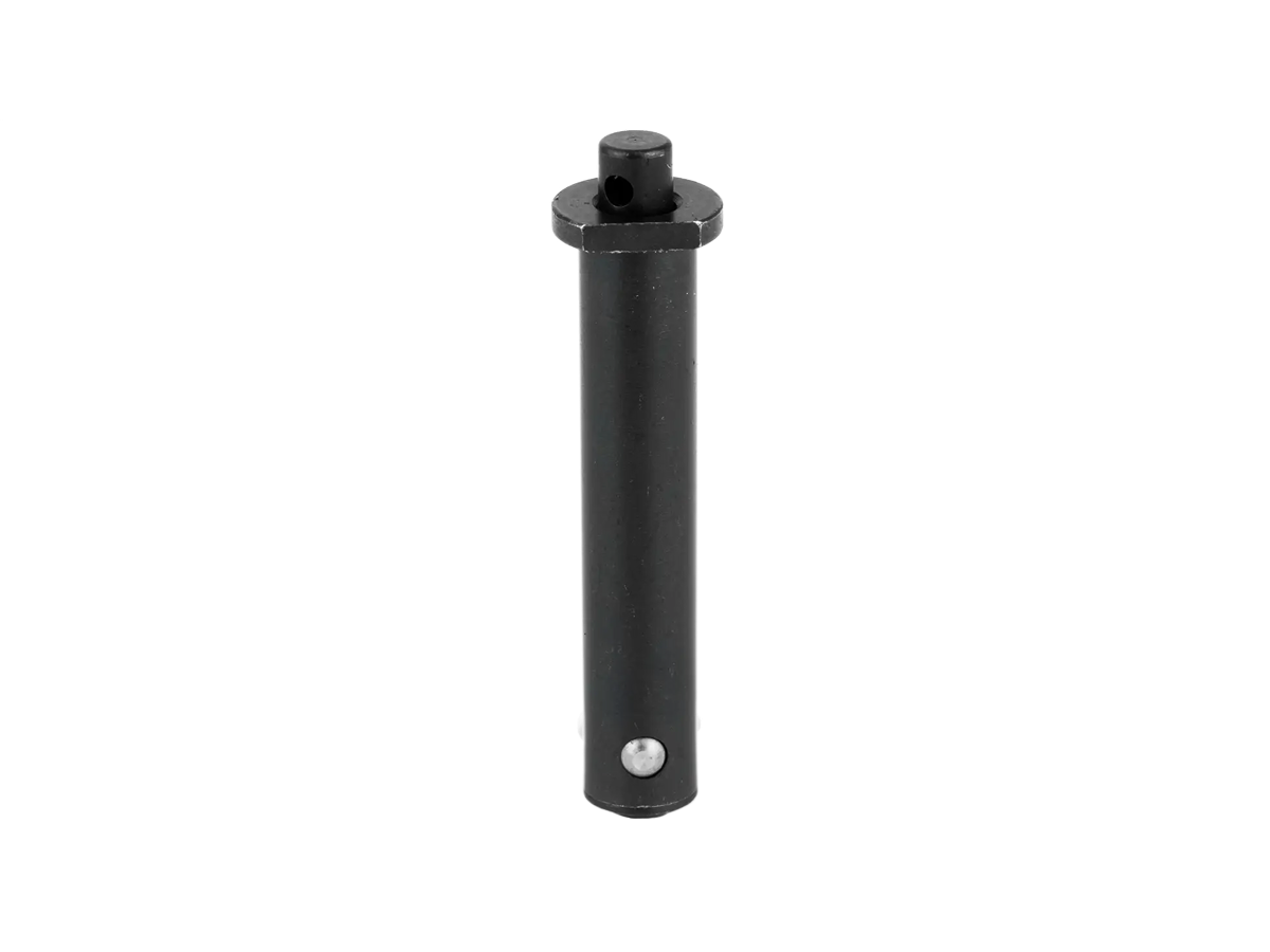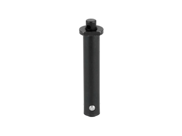 These pins have a spring-loaded push button that, when pushed, retracts the stainless steel detents for easy pin removal. The steel housing has a black oxide finish. The button also has a drilled cross hole which allows for the installation of a seal wire to prevent tampering with the guns internals. The pins are fitted with an end cap to simplify pin removal and installation. It also prevents any debris from entering the internal parts of the pins.